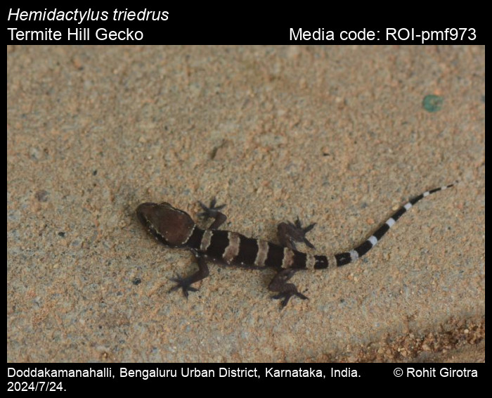 Anonymous 2025. Hemidactylus triedrus (Daudin, 1802) – Termite Hill Gecko. In Kamdar, A. and K. Kunte. (Chief Editors). Butterflies of India, v. v.1.26. Published by the Indian Foundation for Butterflies. URL: https://www.indianreptiles.org/hemidactylus-triedrus, accessed 2025/10/21.