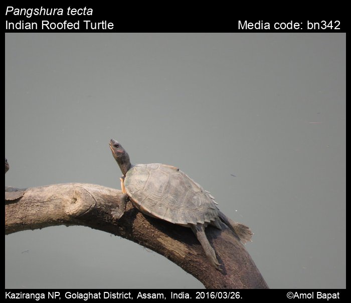 Anonymous 2025. Pangshura tecta (Gray, 1831) – Indian Roofed Turtle. In Kamdar, A. and K. Kunte. (Chief Editors). Butterflies of India, v. v.1.26. Published by the Indian Foundation for Butterflies. URL: https://www.indianreptiles.org/pangshura-tecta, accessed 2025/12/13.