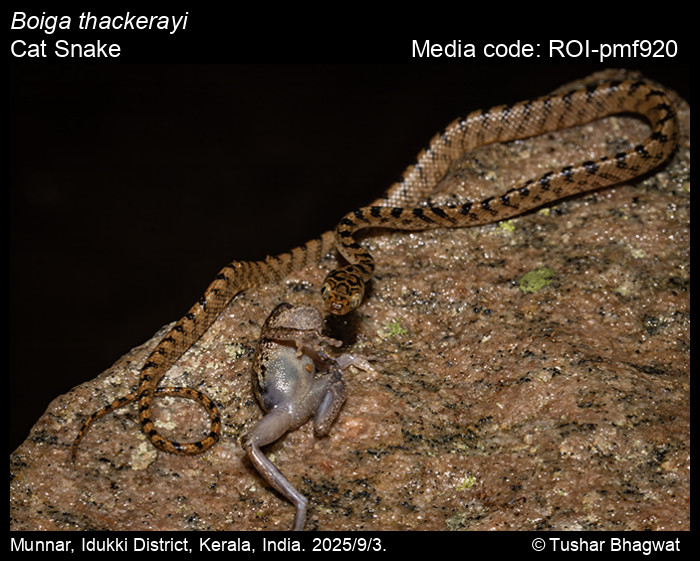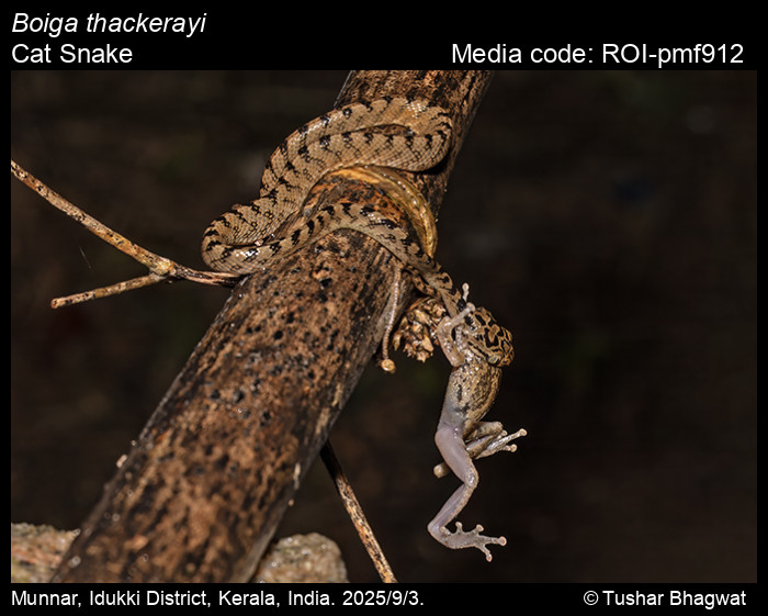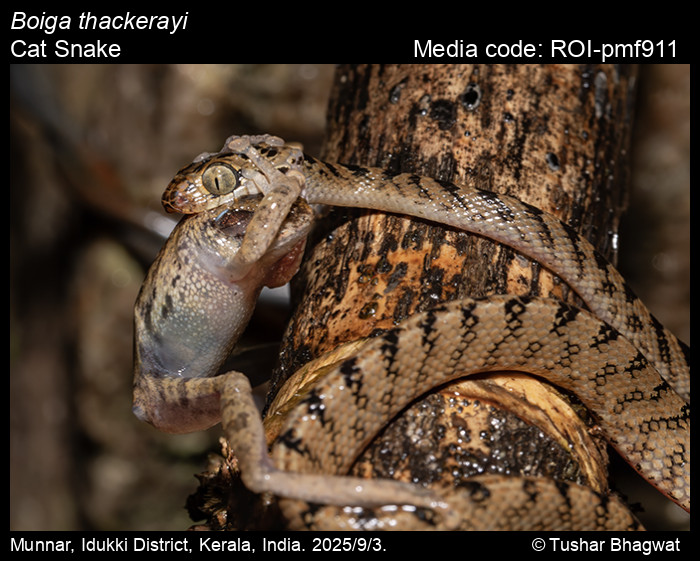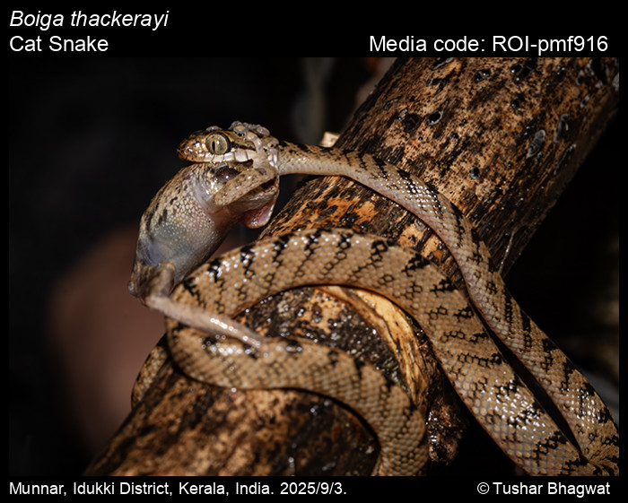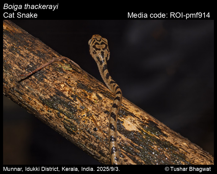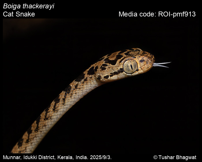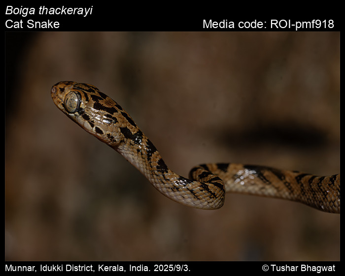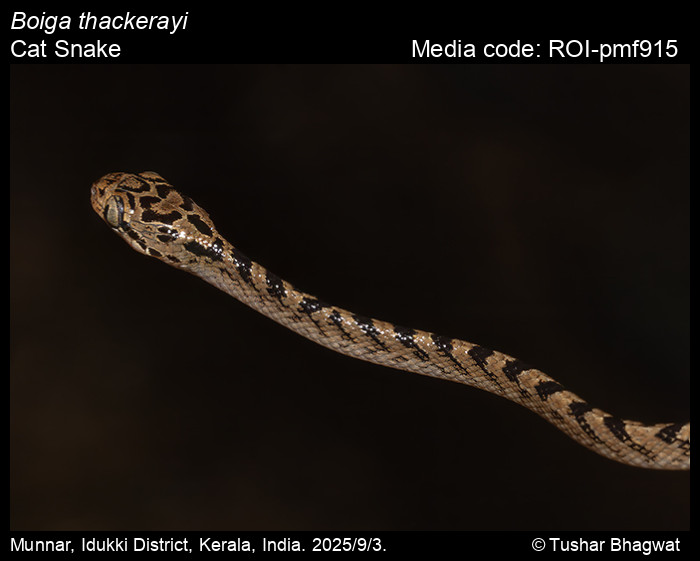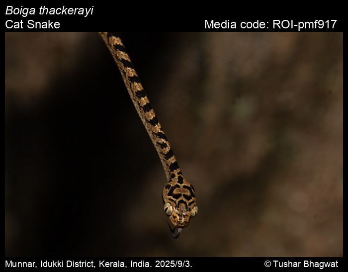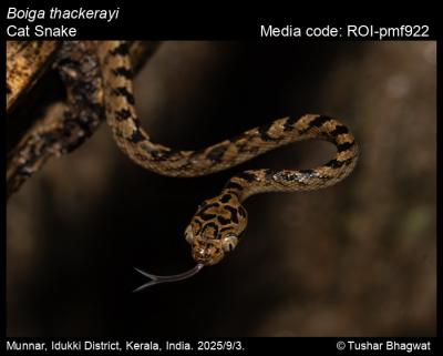 Anonymous 2025. Boiga thackerayi Giri, Deepak, Captain, Pawar & Tillack, 2019 – Cat Snake. In Kamdar, A. and K. Kunte. (Chief Editors). Butterflies of India, v. v.1.26. Published by the Indian Foundation for Butterflies. URL: https://www.indianreptiles.org/boiga-thackerayi, accessed 2025/10/14.