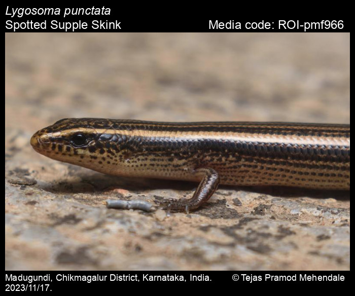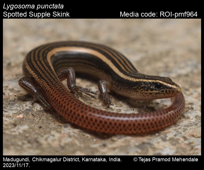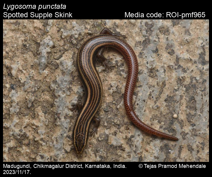 Anonymous 2025. Lygosoma punctata (Gmelin, 1799) – Spotted Supple Skink. In Kamdar, A. and K. Kunte. (Chief Editors). Butterflies of India, v. v.1.26. Published by the Indian Foundation for Butterflies. URL: https://www.indianreptiles.org/lygosoma-punctata, accessed 2025/10/19.